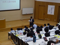2012年07月06日 | 中等部 中2 新聞読み方講座 7月6日(金) 2,3限 中学2年生を対象に、朝日新聞大阪本社の常藤健氏をお招きし、第3回新聞読み方講座(最終回)が開講されました。 これまでの新聞社の仕事内容、新聞の構成や見出しの作り方などの知識を踏まえ、「自分の意見をもつ」ということに視点をおいて講義を聴きました。今朝の新聞を用いて、1人ディベートにもチャレンジしました。 今後も読解力、語彙力を高める手段として、新聞を読み続け、読む・書く・考える能力を鍛えてほしいと思います。