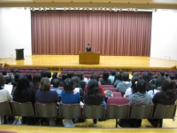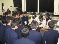 以上6テーマの研究発表が行われ、中1・2のスーパー理進コースの生徒が発表を真剣に聞いていました。