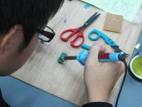 実験の最後に市販の「オルゴールキット」を組み立てます。2回の実験の「ハンダづけの達人」への集大成です。職人技を体得できましたか。