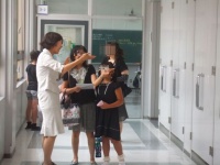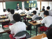 いつもは和歌山とそれほど変わらない暑さだそうですが、今日の吉野は、過ごしやすいです。普段の学校とは違う環境で、5教科の勉強に加え、マナーや整理、集団での振る舞い方を実践します。