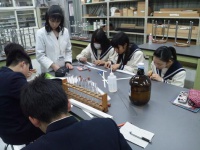 実際に本物の土器に触れたり、出土品の復元品を見たりと、生徒は興味を持って見学していました。