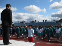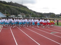 開会式では、生徒会長 友松君が元気いっぱいに選手宣誓をし、精一杯走り抜くことを誓いました。