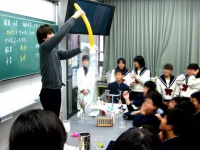 2010年11月22日 | 中等部 液体窒素の実験 液体窒素の実験 本日、中等部2年4組(スーパー理進)の総合学習で「液体窒素の実験」を行いました。 この写真は、液体窒素の入ったビーカーに、膨らませた風船を入れている様子です。生徒たちは興味津々、さて、風船はどうなるのでしょうか・・。 講義は「開智のでんじろう」こと東野先生が行っています。 ★【動画】です。お楽しみください。 この動画は、液体窒素で凍らせた軟式テニスボールを床に向けて落とす様子です。 テニスボールが割れる時の大きな音で生徒はびっくりしていました。 この他にも、超低温の世界を体感できるいろいろな実験が行われました。