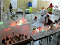 そして、『冬』担当の1年1組です。クリスマスやお正月、節分など、冬の楽しい行事を見事に再現しました。トナカイや雪だるまも、とても上手に作られています。灯した明かりが、寒いはずの冬をほっこりと温かくしてくれますね。