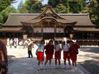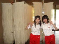 ご飯を食べて栄養補給。午後からは神社の見学と、三輪そうめん山本本社の工場見学です。