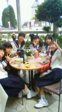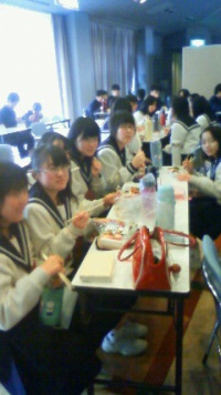 9時に元気よく学校を出発し、11時すぎに淡路SAハイウェイオアシスでランチタイムです。持参してきたお弁当を広げ、仲良く食べていました。