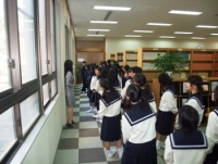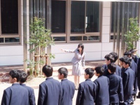 写真は課外活動であるホステリングの様子です。班別にスタートし、ポイント地点で教員からのクイズに答えながら山の頂上を目指し、交流を深めます。
