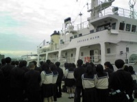 4曲の歌唱とボイスパーカッションのフリースタイル演奏です。美しいハーモニーに、体でリズムをとって聴いている生徒もいました。