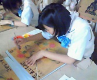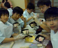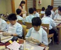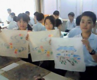 出来上がりを見せてもらいました。1組男子は蹴鞠、女子は流水にもみじ の柄です。色鮮やかで、とてもきれいに仕上がりました。2組…男子 清水坂、女子 京舞妓 3組…男子 鬼、女子 桜 4組…男子 鯉魚図、 女子 新あじさい みなさんはうまくできましたか。