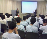 1組は読売新聞高石工場に到着しました。「新聞ができるまで」というVTRを観たあとは、いよいよ工場見学です。