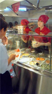 カップのペイントが終わると、麺を入れ、肉、玉子、野菜、エビなど好みの具をチョイスしていきます。期間限定のナスもありました。もちろん味も自分好みです。普通のカップヌードル味、カレー味、塩味、シーフード味の4種類から選びます。