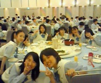 広々とした会場で、待ちに待った夕食の時間です。回転式テーブルでおかずを取り分けていきます。生徒達は皆リラックスした表情で、友達との夕食を楽しんでいました。夕食後は自由時間です。各部屋備え付けのお風呂に入ったり、友達との交流を楽しむ時間です。