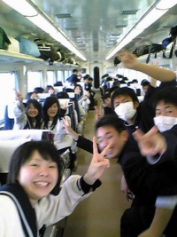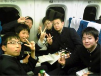 心配されていた電車の遅れもなく、無事全員のぞみに乗り換えました。生徒はさっそく配られたお弁当を開き、早めのお昼ご飯を食べています。
