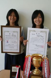 2007年10月10日 | 中等部 中学生英語暗唱大会 9月22日に中学生英語暗唱大会が和歌山市役所にて行われました。 本校から出場した2年1組中村友梨香は審査員特別賞(写真左)、 3年3組小藪安紀が第3位に入賞しました(写真右)。 受賞した2人は11月3日の文化祭で発表する予定です。