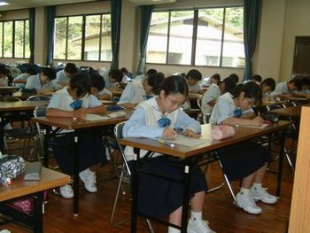 2007年08月04日 | 中等部 中学1年生勉強合宿 8/2(木)から8/4(土)まで、中等部1年生は「紀北青少年の家」(和歌山県伊都郡かつらぎ町)で勉強合宿に行きました。2泊3日という短い期間でしたが、意欲的に勉強に取り組んでいました。最終日にはテストを行い、勉強合宿で学んだ内容を確認しました。 また、退所式では「紀北青少年の家」のスタッフの方から、非常に使用マナーがよかったとお褒めの言葉をいただきました。