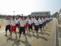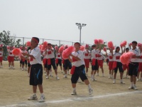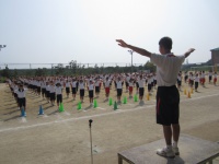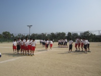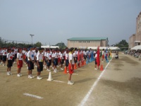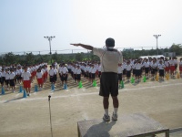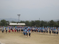 開会式では体育委員長の森田君の開会宣言の後、校長先生からの挨拶、各ブロック長による開会宣言、準備体操が行われました。