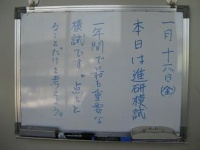 「本日は模試試験 1年で最も重要な模試です。点をとることだけを考えよう。」と書いてあります。他学年のみなさんも、難しい問題も最後まで諦めず、粘り強く受験して下さい。よく考えて解けなかった問題は、後にやり直すことで、次回は解けるようになるのです。