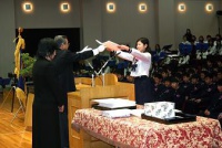 各クラスの代表者に学校長が卒業証書を手渡されました。