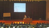 中6・高3の生徒たちには、3限目の時間帯に進路ガイダンスが行われ、河合塾の三宅先生の方から「受験生の心構え」というテーマでご講演いただきました。