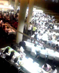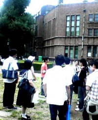 画像は東大の安田講堂前で二日間のプログラムを見ている様子です。