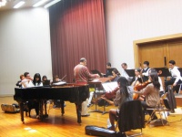 青島広志先生とブルーアイランド楽団の皆さんが朝早くに到着され、リハーサルが始まります。