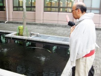 青島先生は現在、東京芸大の先生ですが、芸大のキャンパス内の池の鯉をとても気に入られているそうです。朝、本校に到着の際にも、鯉の池で立ち止まって、鯉たちを眺められていました。