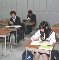 中6・高3の生徒たちには、3限目の時間帯に進路ガイダンスが行われ、河合塾の三宅先生の方から「受験生の心構え」というテーマでご講演いただきました。