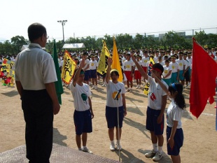 開会式では、校長先生から若き力と技、仲間とのチームワーク、団結の美を披露し、開智パワーを直川の大空にとどろかそう、そして、力一杯、心に残る体育祭にしましょう、とのエールをいただきました。