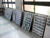 中等部5学年の教室前の廊下には、6月の北海道修学旅行の写真が展示されていました。