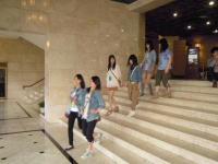 7:30 ホテルを出発し、今から釜山鎭女子高等学校、養精高等学校に韓国の生徒を迎えに行きます。