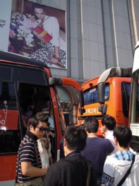 今からバスで姉妹校、釜山鎭女子高等学校、養精高等学校に向かいます。