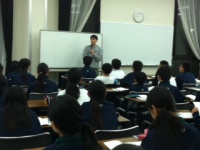 夕食後、課題学習を行い、21時から熊澤教頭先生と守法先生の講話を聞きました。