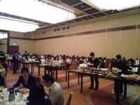 第II部では、ホールの壇上に6名の先輩方が上がり、