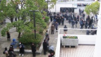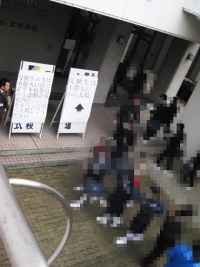 正門前で中学校や塾の先生から点呼を受けている生徒も見受けられます。