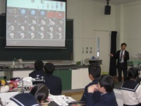 2011年12月19日 中2 スーパー理進コース講演会 本日、5・6限目に近畿大学生物理工学部の三谷先生が来校してくださり、 「未来の医療のキーワード ~幹細胞~」 について、講演してくださりました。 ES細胞や、iPS細胞の具体的な話を交えて、再生医療について興味深い話を聴くことができました。 生徒たちはやや難しい内容の話にもかかわらず、最先端の話を興味を持つことができたようです。 三谷先生、どうもありがとうございました。