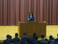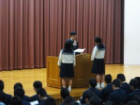 最後に、和歌山市中学生英語暗唱大会入賞者の2年4組の日茂伶斗くんによるスピーチと、高円宮杯英語弁論大会優勝者の3年4組阿南理帆子さんによるスピーチがありました。