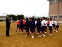全試合が終了しました。クラスごとに整列して結果発表です。