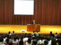 中等部1学年スーパー理進クラス担任の御前先生から、中学校の教育内容の説明や具体的な取り組みの説明がありました。