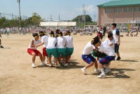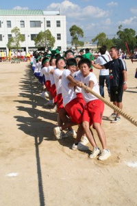 緑ブロックの綱引きの様子。チームワークが素晴らしかった緑ブロックが総合優勝を果たしました。