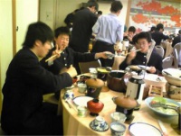 心配されていた電車の遅れもなく、無事全員のぞみに乗り換えました。生徒はさっそく配られたお弁当を開き、早めのお昼ご飯を食べています。