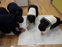 また、21日(土)には、この研修を通じて得た知識を整理するため、開智周辺の地図を使って災害をイメージした防災プランをつくってみました。