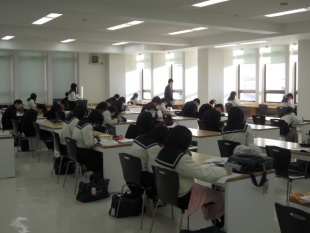 14時から、高校入試の説明会が行われました。平成26年度入試から、新しいコースが始まります。コース改編についての詳細な説明や教育内容、生徒募集要項等の説明が行われました。