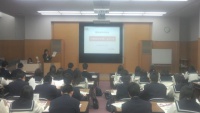 全体会の後の校内見学です。画像は、マルチメディア教室での説明の様子です。