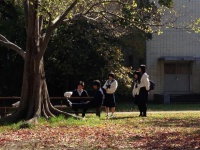 お昼休みの一コマです。昼食は大学の学食でいただき、食後にキャンパス内を散策する生徒の姿が見られました。