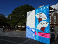 京大構内の木々は、赤黄緑と色とりどりの綺麗な色づきを見せていました。また、明日からは京大の大学祭となっており、至る所に学祭の立て看板が飾られていました。