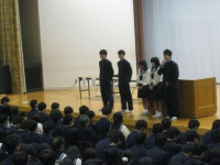 2013年11月13日 | 中等部(4‐6年)・高等部 高校生徒会役員改選 本日、6時間目に開智ホールにて生徒会役員改選(高校)が行われました。 画像は、旧役員の挨拶の様子です。 「生徒会役員の経験のおかげで、大きく成長させてもらいました」という言葉が印象的でした。 続けて、立候補者による立ち合い演説会が行われました。 各候補者共に、非常に中身の濃いユニークな決意表明でした。 今後の生徒会活動に期待しています。是非、旧役員の先輩方以上の生徒会にしてくださいね。