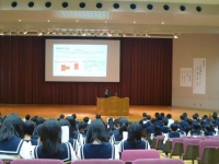 2013年11月09日 中4 保護者会 本日14:00より、中学4年生の保護者会を行いました。まずは学校長の挨拶です。 続いて学年主任より、最近の学年の様子や文理選択における心構え等の話がありました。 次に、ベネッセコーポレーションの藤澤さんより「文理選択について」という演題でご講演いただきました。近年の社会環境の変化、社会が求める力、文理選択の心構え、理科の入試科目などのお話していただきました。生徒達には教科の好き嫌いで安易に文理を選択するのではなく、大学入学後の自分の進路を意識し、各大学の入試の仕組みを理解したうえで決めてもらいたいと思います。本日来校してくださった保護者の方々、ありがとうございました。