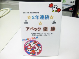 2013年11月08日 | クラブ 2年連続 アベック優勝! 優勝トロフィー 第66回全日本バレーボール高等学校選手権大会、「春の高校バレー(春高バレー)」へ、男子・女子ともに出場が決まりました。 和歌山県大会の決勝戦での応援、本当にありがとうございました。 画像は、中央棟1階のエレベータホールに飾られている、優勝トロフィーです。 男女バレー部のみなさん、全国大会でのご活躍を期待しています。 全国大会は、平成26年1月5日(日)からとなっています。応援の方、よろしくお願いします。