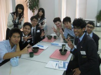 自己紹介と学校案内をおえた後は、生徒ホールでランチを一緒しました。お箸の使い方やお気に入りの日本食についてなど会話がはずんでいました。