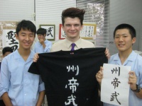 書道体験では、Tシャツに漢字で名前を書いてもらい、お土産として持って帰ってもらいました。